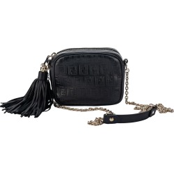 fendi black embossed camera bag w tassel