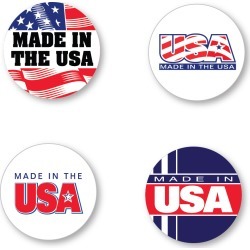 2" Diameter "Made In The USA" Circle Labels with four different designs (250 Per Roll)