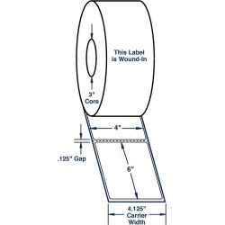 Keywords: 4 x 6 white wound in label w perf thermal transfer labels perfed 1000 per roll 4 rolls per carton