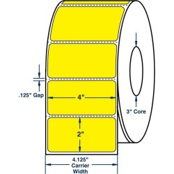 Keywords: 4 x 2 general use label w perf thermal transfer labels perfed pantone yellow 2900 per roll 4 rolls per carton