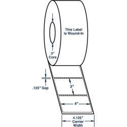 Keywords: 4 x 3 white wound in label w perf thermal transfer labels perfed 1950 per roll 4 rolls per carton