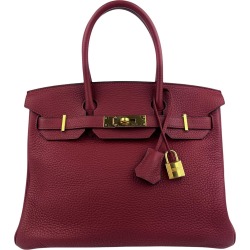 herm�s garnet red clemence 30 cm birkin with gold hardware