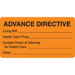 Advance Directive Labels, Fluorescent Orange, 3-1/4" x 1-3/4", (Roll of 250)