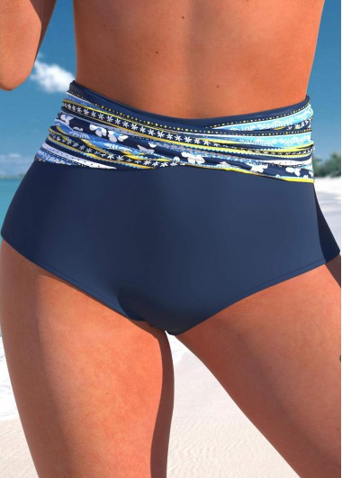ROTITA Navy Floral Print High Waisted Bikini Bottom