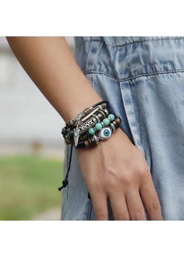 Black Layered Round Alloy Retro Bracelet