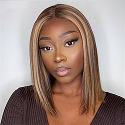 Category:Human Hair Lace Wig; Gender:Women,wigs for black women; Wig Type:Natural Wigs; Occasion:Party Evening,Vacation,Daily Wear; Age Group:Adults; Color Shade:Multi-color,Dark Brown,Blonde; Density:130%; Origin of Hair Donors:Brazilian Hair; Hair Material:Human Hair; Cap Construction:13x4x1 T Part Lace Front; Lace Material:Swiss Lace; Texture:Straight; Length:Short; Features:Pre-Plucked,Glueless,with Baby Hair; Listing Date:08/07/2023; Cap Circumference:; Front to Back:; Nape of Neck:; Side to Side Across Forehead:; Side to Side Over Top:; Temple to Temple Across Back:; Hairstyle:Middle Part,Bob; Can Be Permed:Yes