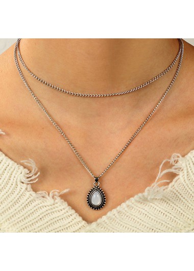 Silver Waterdrop Pendant Metal Detail Necklace FREE Shipping & 30 Days Easy Return