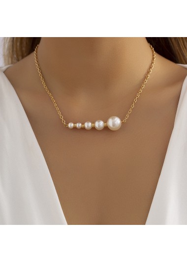 Pearl Design Metal Detail Gold Asymmetrical Necklace FREE Shipping & 30 Days Easy Return