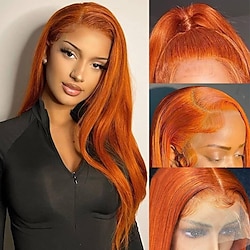 Category:Human Hair Lace Wig; Gender:Women; Wig Type:Party Wig,Natural Wigs; Occasion:Party Evening,Party,Vacation,Daily Wear,Party Evening; Age Group:Adults; Color Shade:Orange; Density:180%,150%; Origin of Hair Donors:Brazilian Hair; Hair Material:Human Hair; Cap Construction:13x4 Lace Front; Texture:Straight; Length:Long; Features:Pre-Plucked,Glueless,with Baby Hair; Listing Date:07/24/2023; Cap Circumference:; Front to Back:; Nape of Neck:; Side to Side Across Forehead:; Side to Side Over Top:; Temple to Temple Across Back:; Hairstyle:Free Part,Middle Part; Can Be Permed:Yes