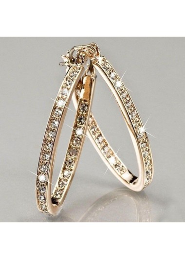 Rhinestone Design Circle Detail Gold Earrings FREE Shipping & 30 Days Easy Return