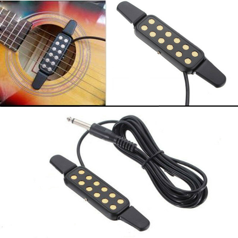 nullFeatures:Adjustable volume;Suitable for large-scale stage performances;Home use;Enough for rehearsals;Specifications:Power supply: power supplied by loudspeaker box, no need of batteryInstallation method: manually clipped in the guitar sound holeOutput line interface: About 6.5mm mono straight plugLength of connecting wire: about 3 meters/9.8ftNet weight: about 129gGross weight: about 207gProduct size: 130 X 70 X 14mm/5.12 X 2.76 X 0.55" (L X W X H)Packing size: 137 X 98 X 38mm/5.39 X 3.86 X 1.50" (L X W X H)