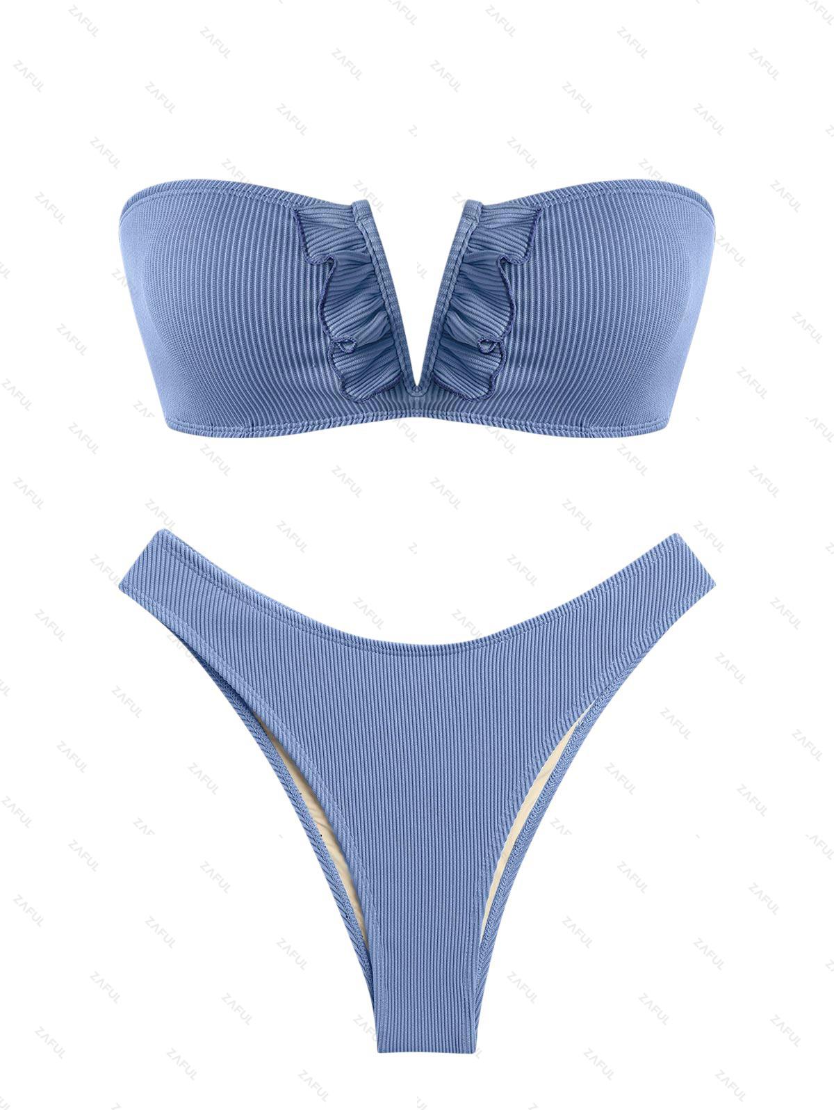 Zaful Swimwear Category: Bikini Set Style: Fashion,Sexy Type: Bandeau Swimwear,Cheeky Bikini,High Leg Swimwear,V Wired Swimwear Features: Cool Touch Nylon Lining,Lined,Padded (Removable Pads),Wire Free Material: Polyester,Spandex Material Stretch: High Stretch Collar-line: Strapless Pattern Type: