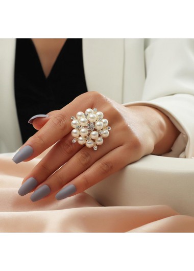 Gold Rhinestone Open Adjustable Pearl Ring FREE Shipping & 30 Days Easy Return