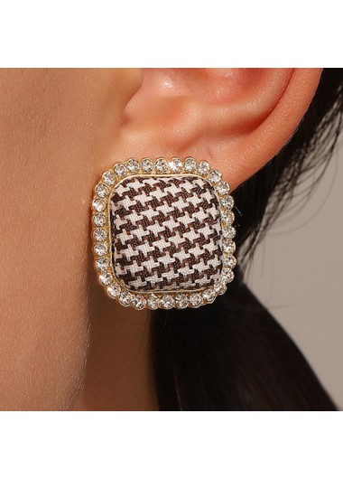 Houndstooth Rhinestone Detail Alloy Gold Earrings