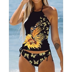 Season:Summer; Fabric:Polyester; Sleeve Length:Sleeveless; Gender:Women's; Swimwear Category:2 Piece,Tankini; Bra Style:Padded Bras; Style:Beach Wear; Elasticity:Stretchy; Tops Type:Tank Top; Occasion:Swimming,Vacation; Fit Type:Regular Fit; Function:Swimming,Stretchy,Quick Dry; Pattern:Sunflower; Design:2 Piece,Printing; Trends:Sports; Special Size:Normal; Bottom Type:Shorts; Front page:FF; Listing Date:03/06/2023; Production mode:External procurement; Length [Top]:; Waist:; Support Type:Wireless; Print Type:3D Print; Bust: