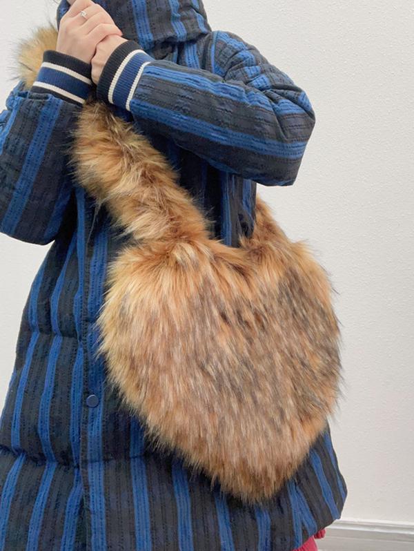 Zaful Gender: For Women Type: Crossbody bag,Shoulder bag Style: Cute Occasion: Daily Closure Type: Magnetic Closure Strap Type: Non-adjustable Shoulder Strap Pattern Type: Heart Material: Faux Fur Product Size(L x W x H): 41.00 x 10.00 x 34.00 cm / 16.14 x 3.94 x 13.39 inches Weight: 0.9000kg Packa